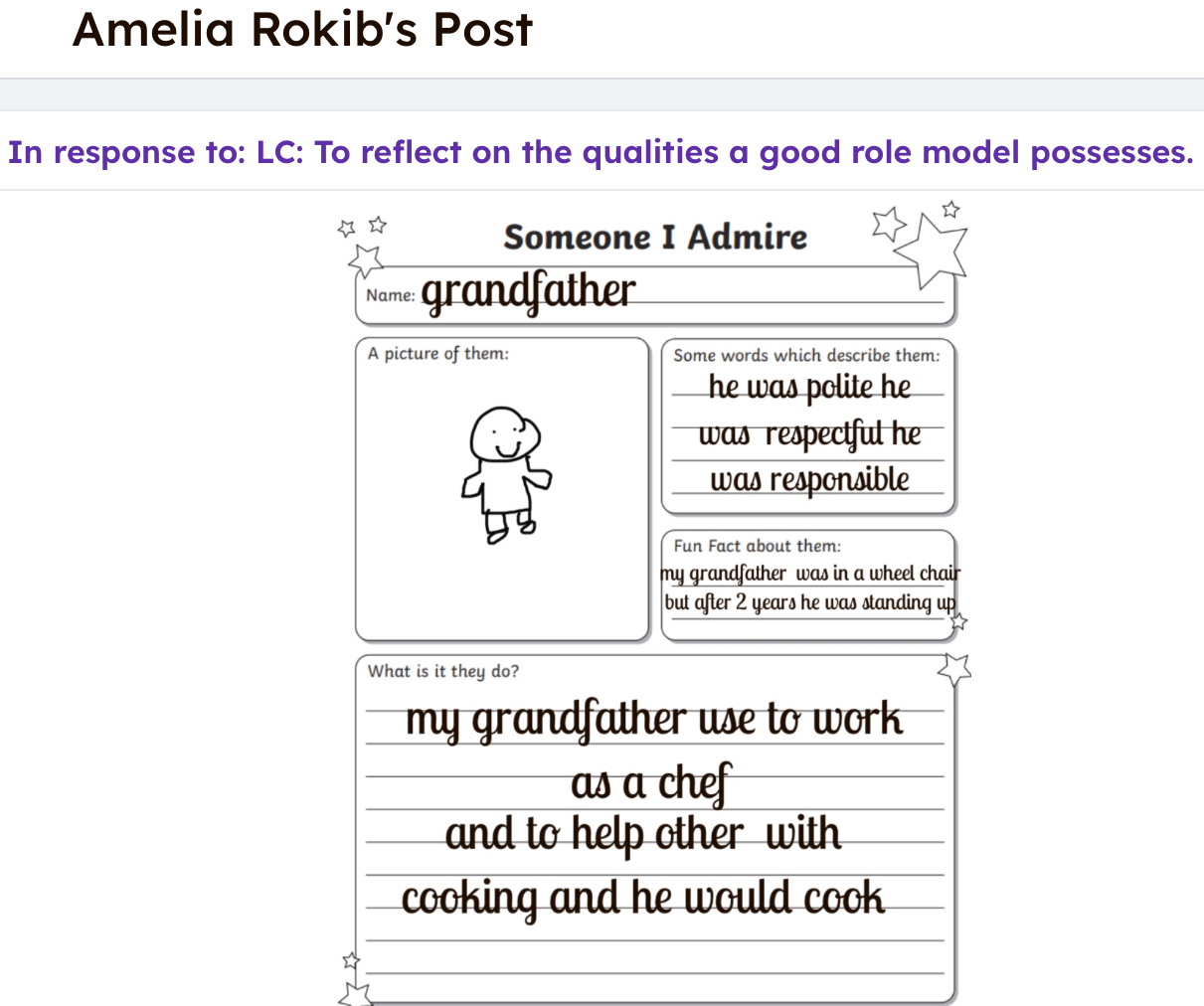 Welcome to our online class page! I'm Mrs. Ali, your class teacher, and I'm thrilled to support you as you transition to Year 3. This page is your space to reflect on your learning journey and celebrate your achievements.