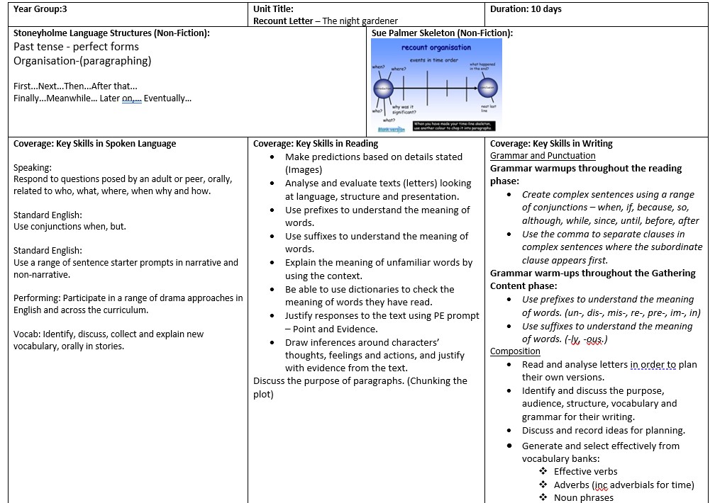 Following on from this fiction Unit, we will be learning how to write a first person recount in the form of a letter. We will read and analyse letters in order to plan our own versions based on the experience of William in the story The Night Gardener.