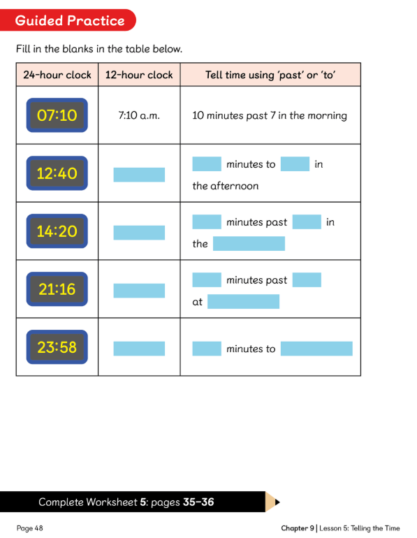 L.C: To be able to tell and write the time from 12-hour and 24-hour clocks.