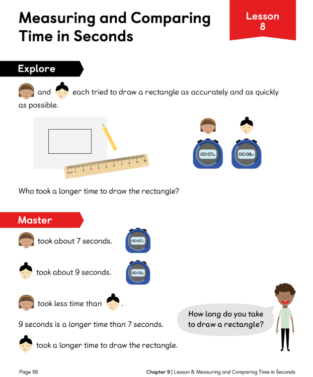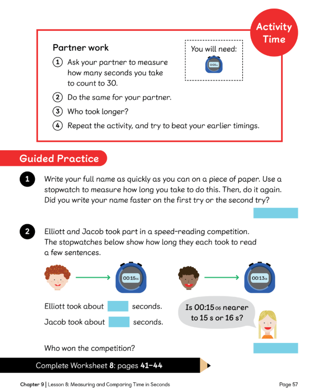L.C: To be able to measure and compare time in seconds using a stopwatch.