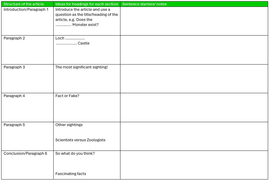 Today you are going to plan a magazine article for children your age about a different monster. You are going to invent your own!