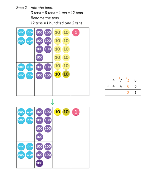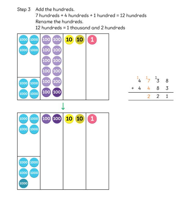 LC: To be able to add two numbers with renaming in the hundreds, tens and ones columns.