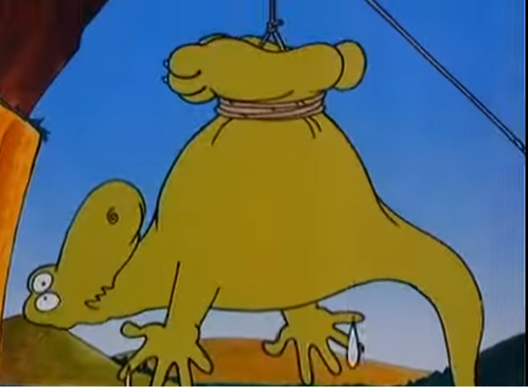 down below the cousins saw the ling green beast.