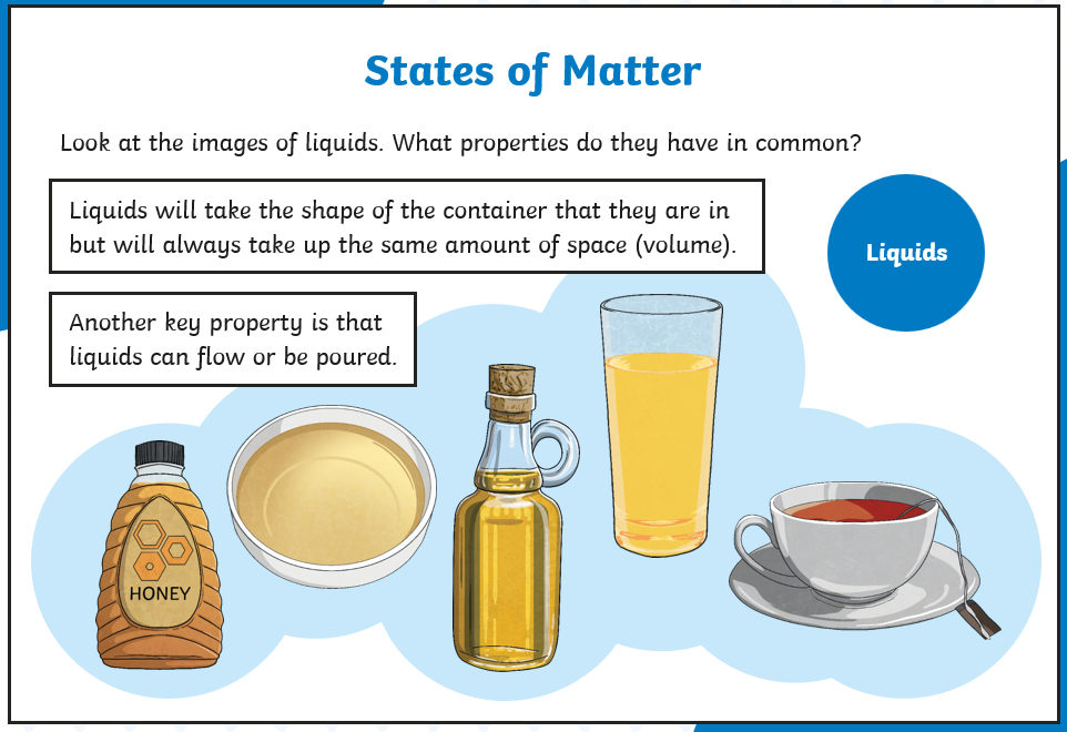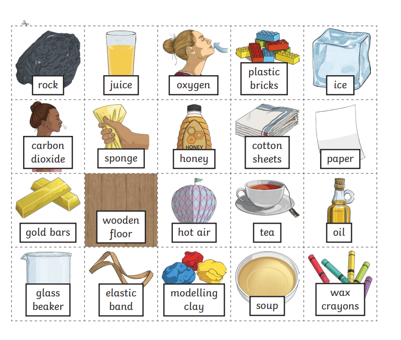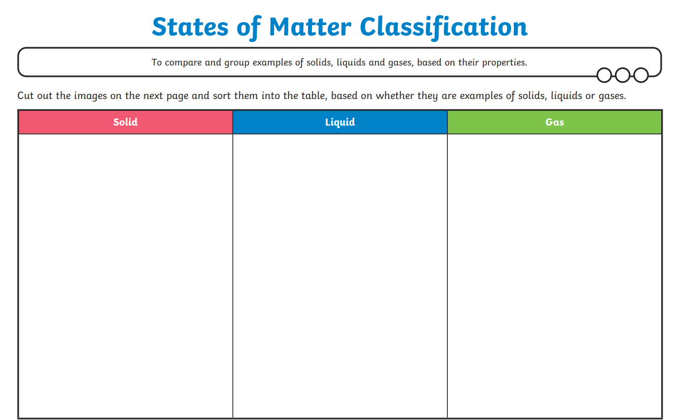 LC: To identify and group together materials according to whether they are solids, liquids or gases.