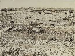 This artist is the work of Van Gogh he uses bold dark marks for the Foreground, smaller lighter marks in the middle ground and really small and lightly drawn further in what is called the Background.
