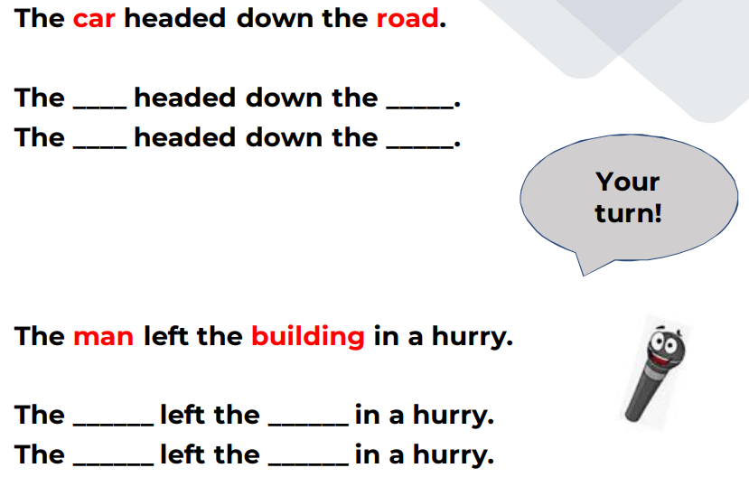 Say then write a sentence for each of the words