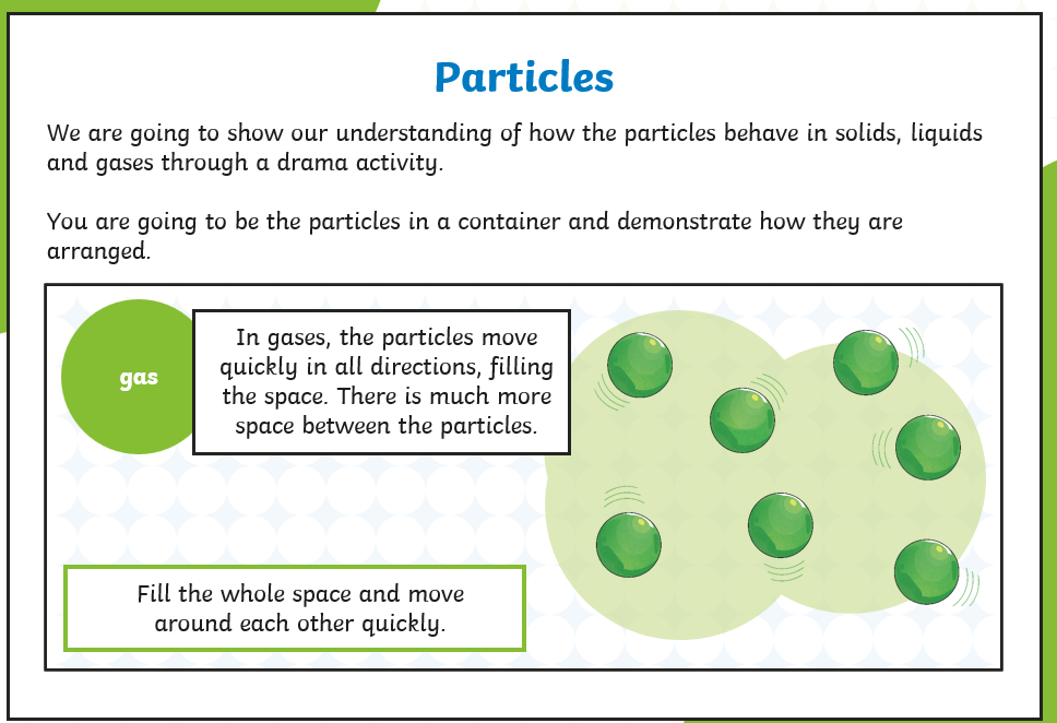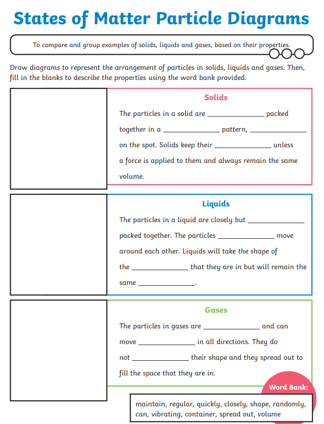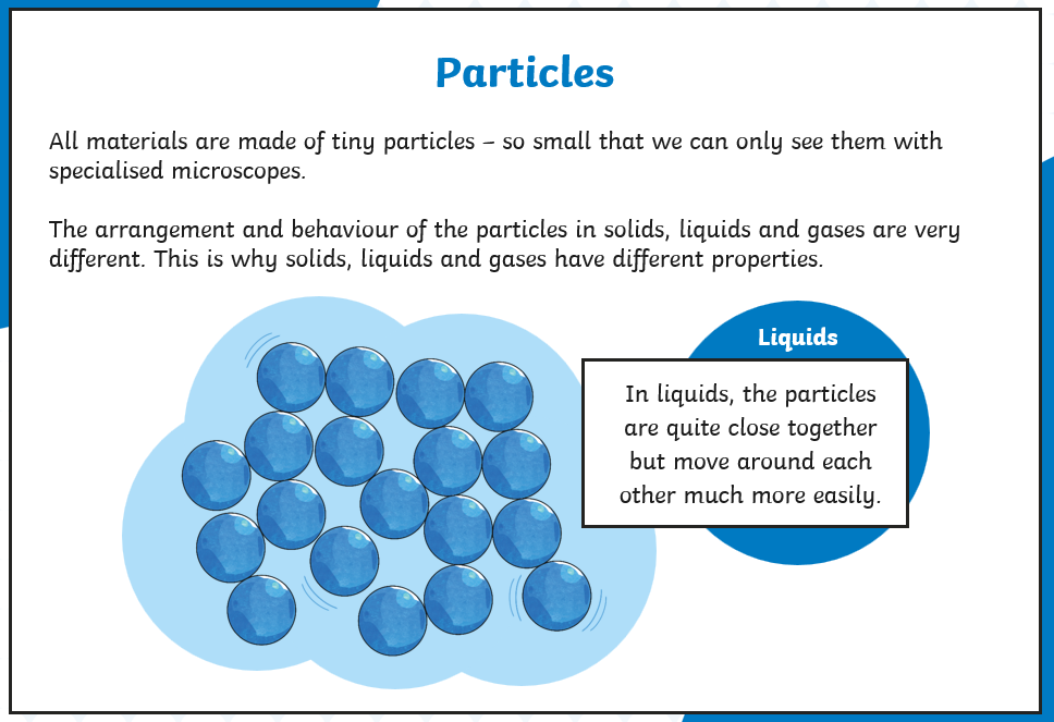 Draw the particles for solid, liquid and gases.