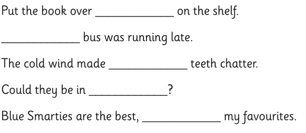 Their-is a possessive adjective. This means it shows belonging. For example: Their lunch was very tasty. The children are wearing their school uniform.