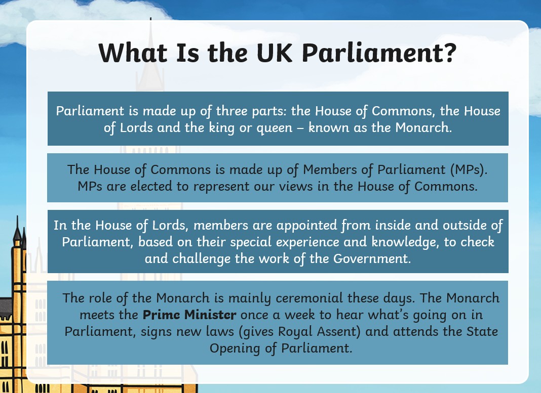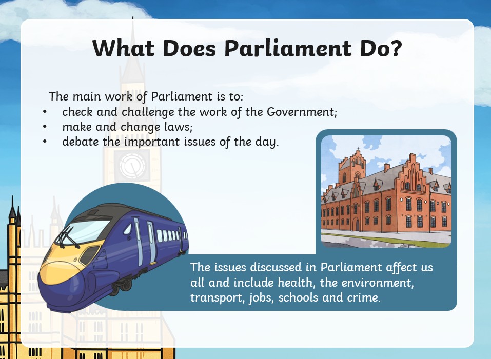 Topics that might be discussed in parliament would include: