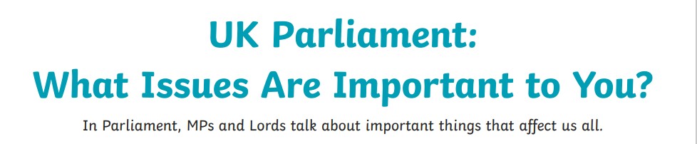 Now decide on one issue that is very important to you, and complete this task. Think about why it is important to you. Think about what you would like the government to do to tackle this issue.