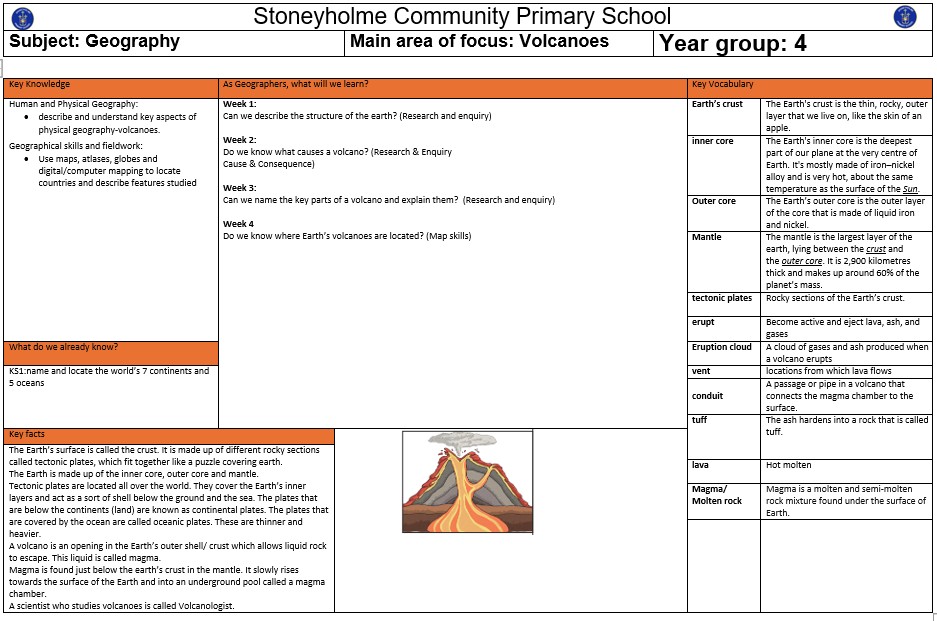 As Geographers, we will learn about the structure of the planet we live on - planet Earth. We will find out what causes volcanoes, what a volcano is and where in the world they are found.