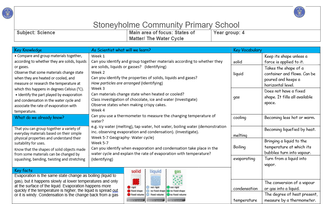 As Scientist, we will learn to compare and group materials based on whether they are solids, liquids, or gases, recognising the distinct properties of each state. We will observe how materials can change state when heated or cooled and measure or research the specific temperatures (in degrees Celsius) at which these changes occur, such as melting, freezing, or boiling points.