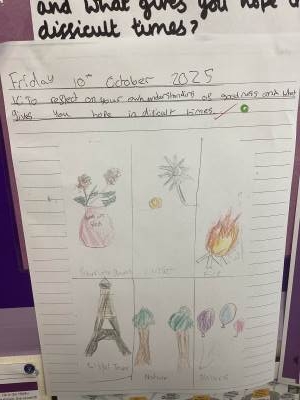 We look at a different value each week in Collective Worship Time and we share our opinions and listen to others.