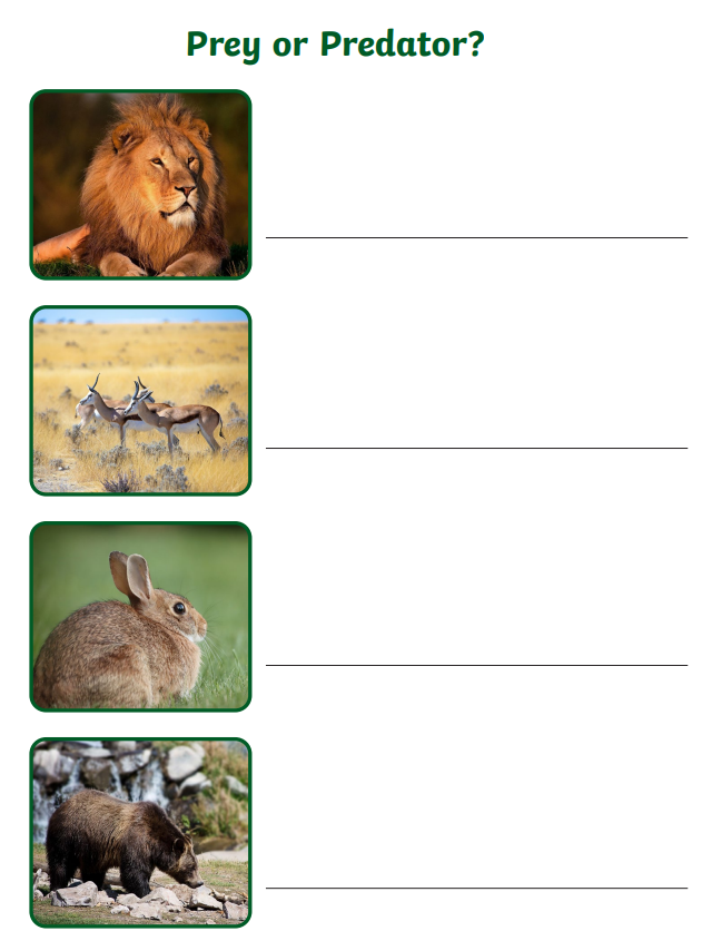 In your table groups decide whether the animals are prey or a predator or both.