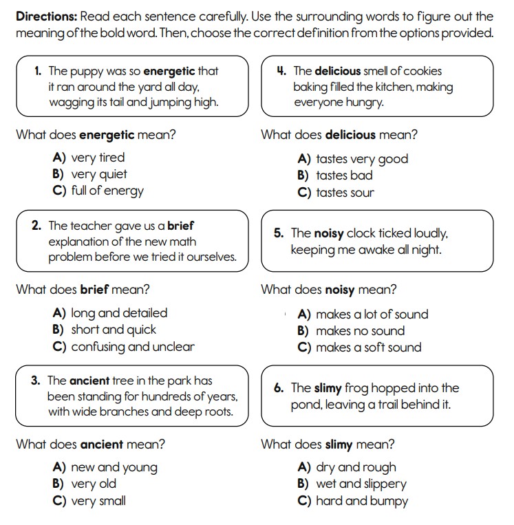 LC: To explain the meaning of key vocabulary within the context of the text.