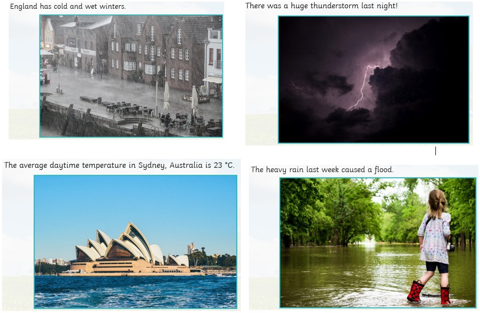 We are going to measure rainfall (precipitation), wind direction, wind speed and temperature using different measuring instruments twice a day for a week. We will record our measurements in a table, then use the information to construct graphs. We will learn about different types of clouds and use our observational skills to describe them and think about what they tell us about the weather.