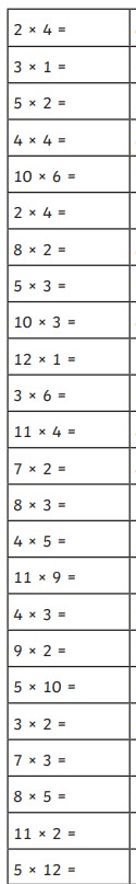 How quickly can you complete these x table questions?