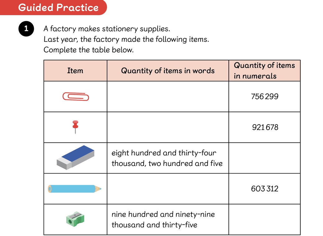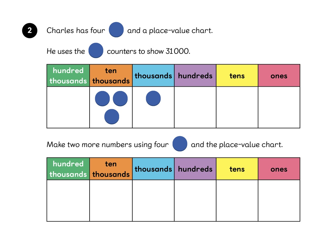 LC: to be able to read and represent numbers to 1,000,000 using place-value counters