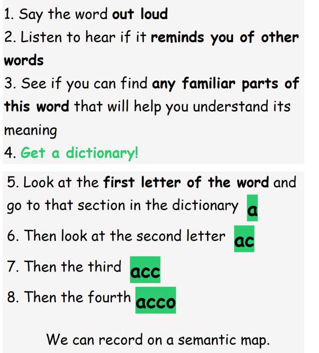 LC: to use the first three or four letters of words to find their meaning in a dictionary