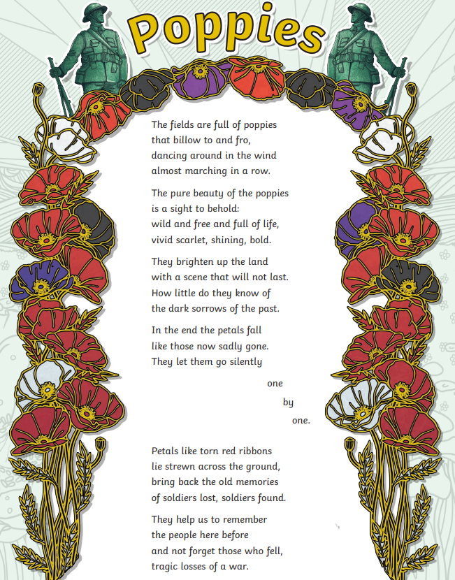 The poems below tell of the significance of poppies as a symbol of remembrance of those who died during wars.