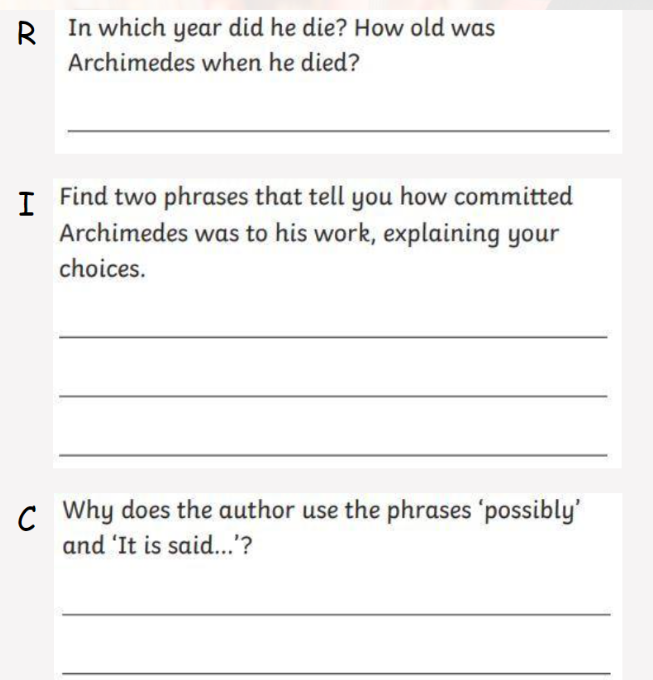 LC: to summarise the main ideas drawn from more than one paragraph, identifying key details that support the main ideas