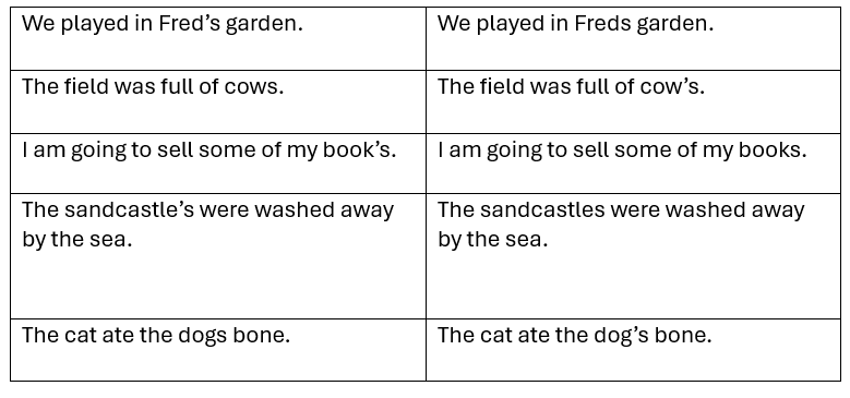 I am going to put sentences on the screen. You must write the correct sentence on your whiteboard. Tell me which sentence uses the apostrophe correctly.