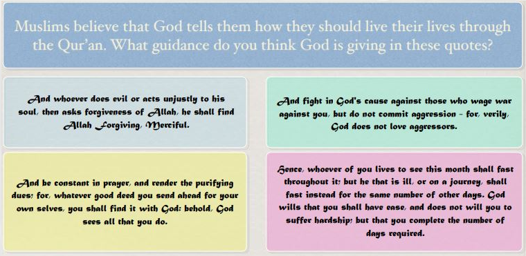 Tip: Think about what God is telling Muslims to do, or how He wants them to behave.