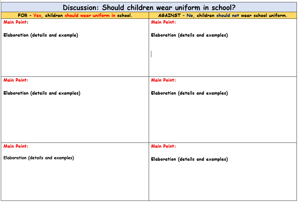 Look at the Junk Food model above to give you some ideas on the structure then complete the model below. Your teacher will model her plan for her topic.