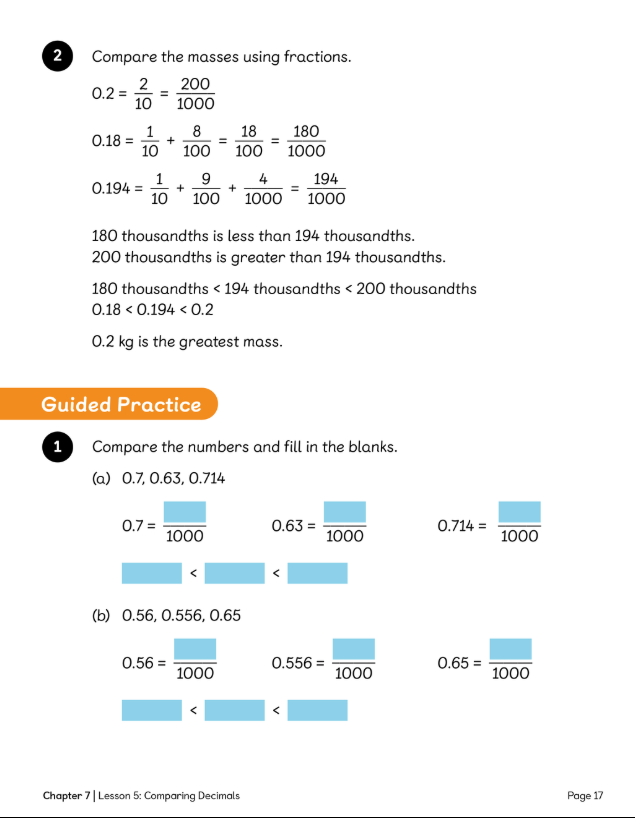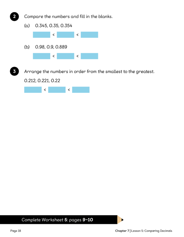 LC: To be able to order and compare decimals.