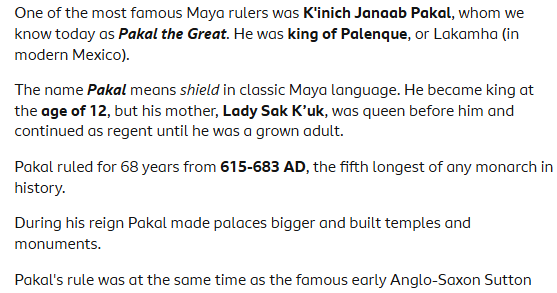 Click on the picture link below to read about one of the Mayan civilisation's great leaders.