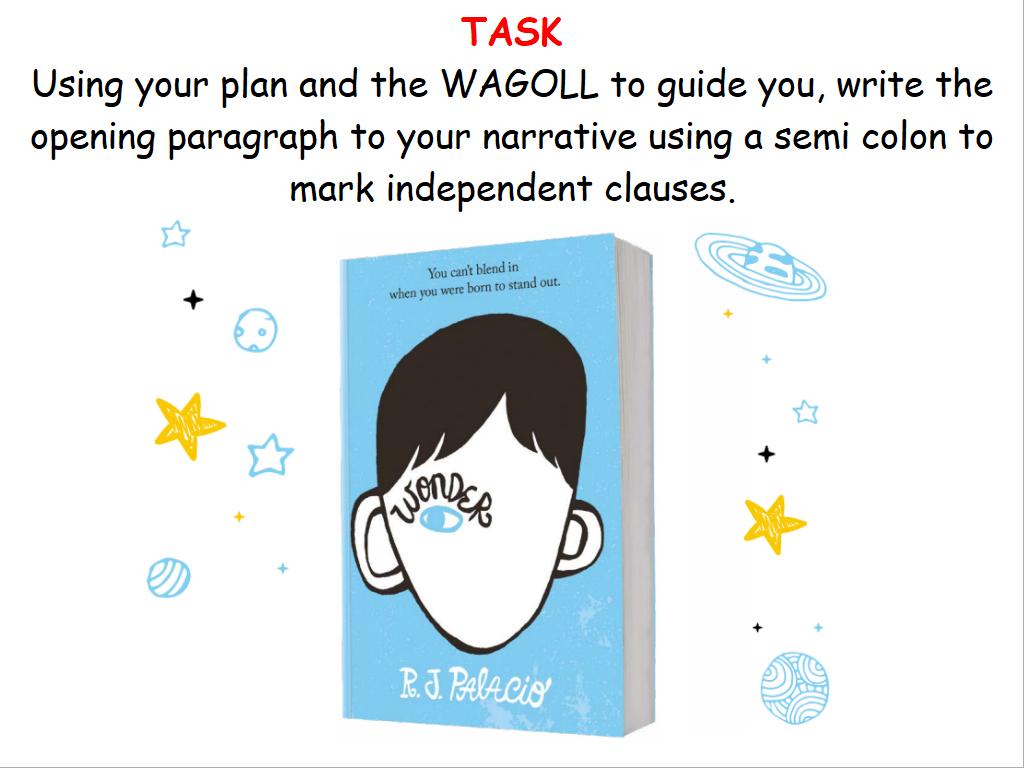 LC: To write the opening paragraph using a semi colon to mark an independent clauses.